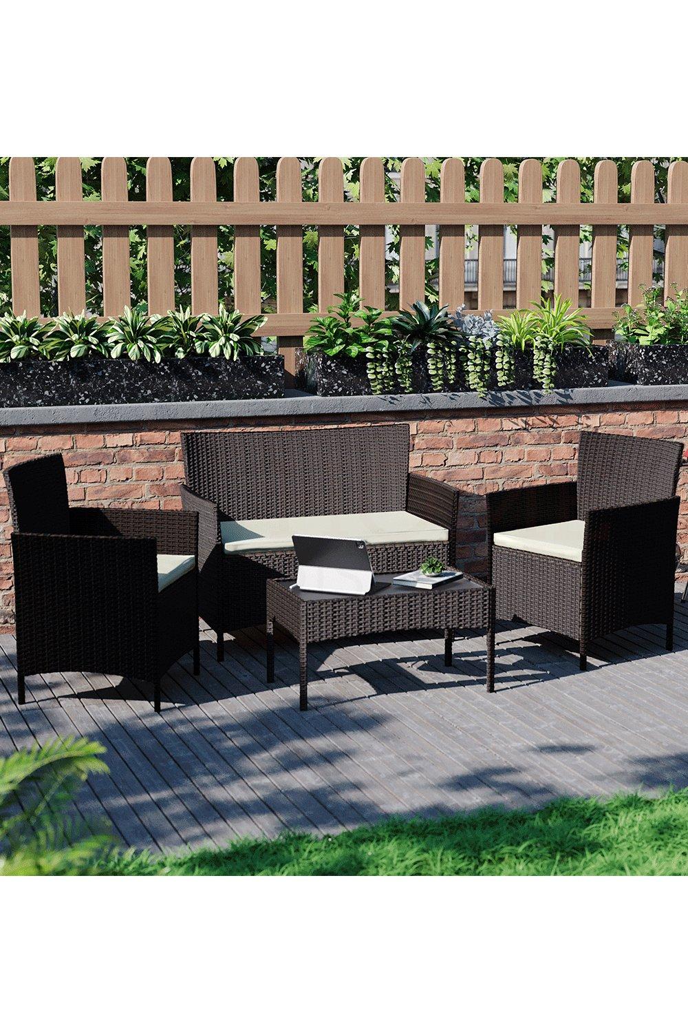 Garden Vida Kendal 4 Piece Rattan Set, Black & Outdoor Patio Furniture Cover