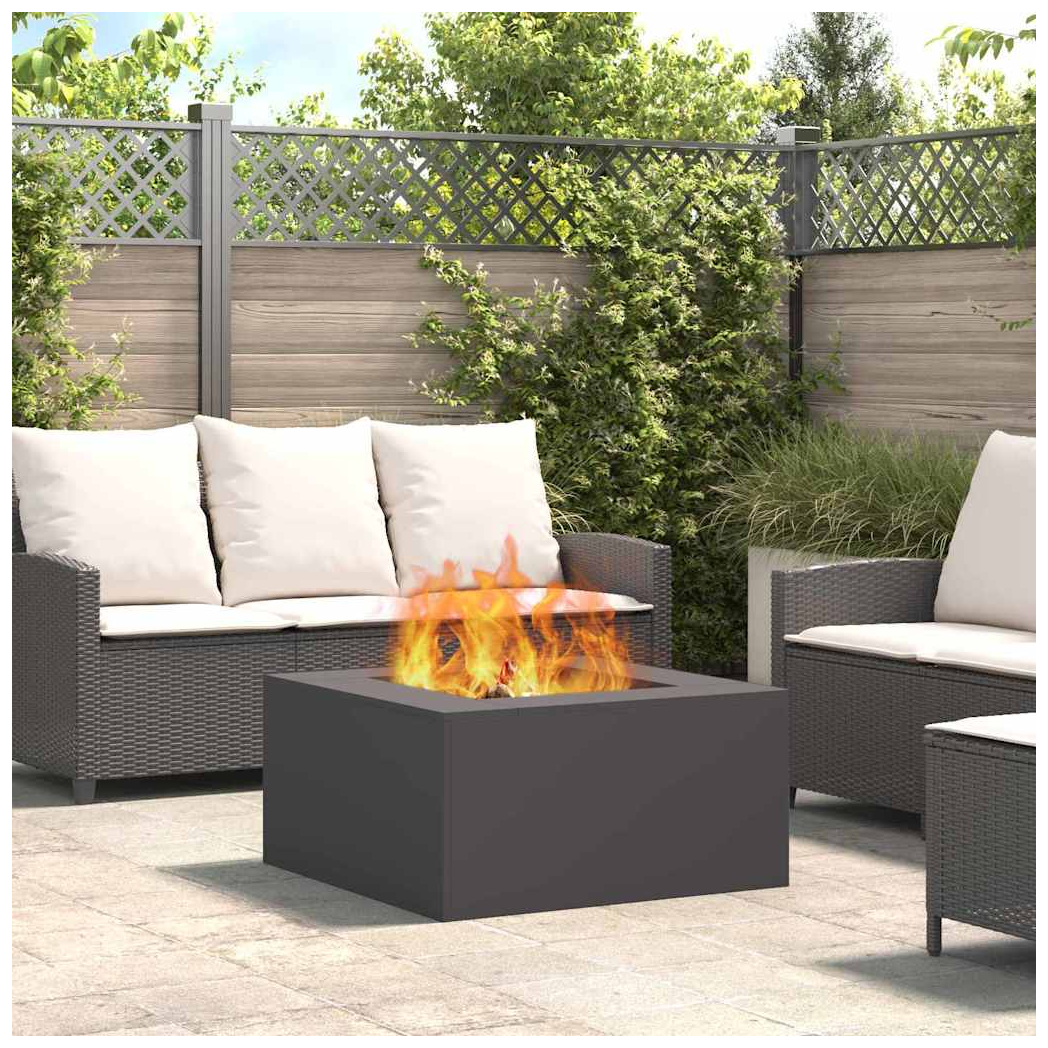 Fire Pit Rectangular Black Steel 80x80x40cm Modern Outdoor Patio Heater Durable