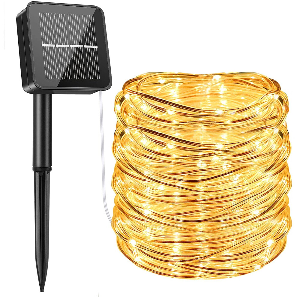 Solar String Lights Outdoor Rope Lights,Updated 100 LED 33 feet 8 Modes Solar Fairy Lights,Waterproof for Yard,Christmas Tree,Garden Decorations(Warm