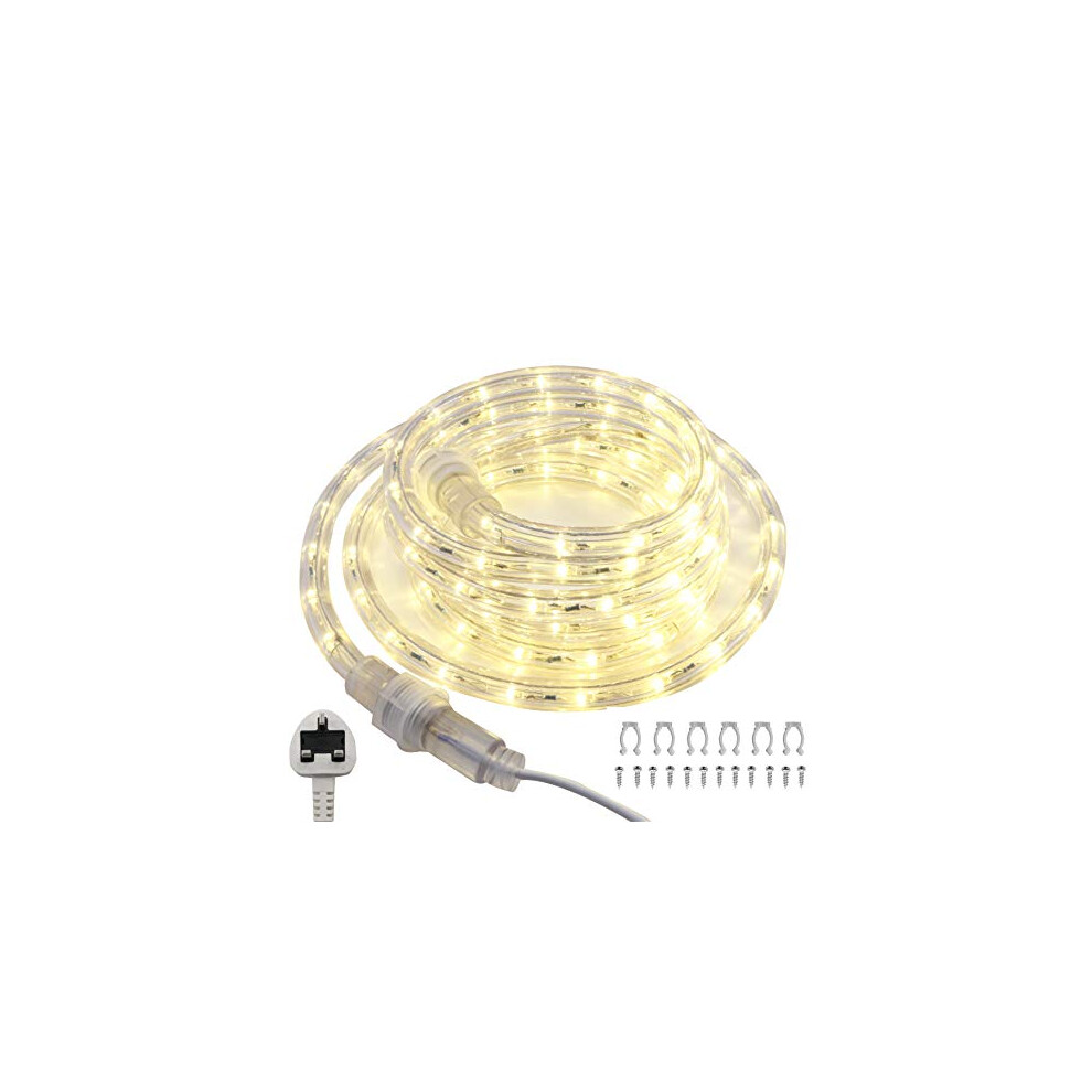 FOEERS Outdoor LED Rope Lights,9.8FT Warm White 220V Waterproof Mains,Connectable String Light Plug in,Christmas Lighting for Bedroom Garden Camping