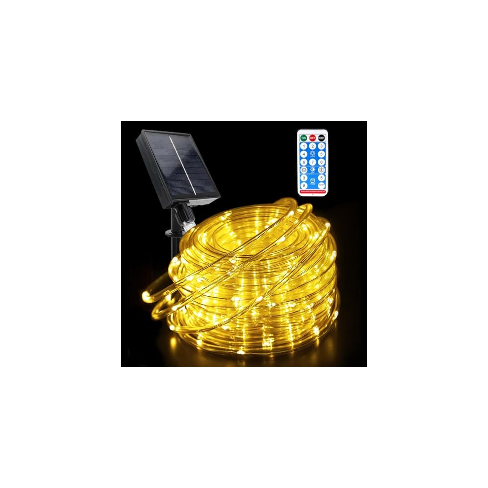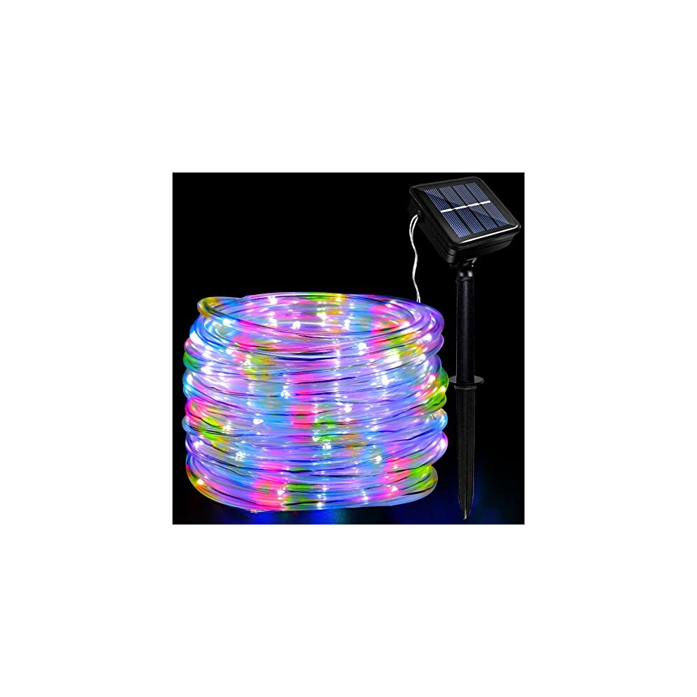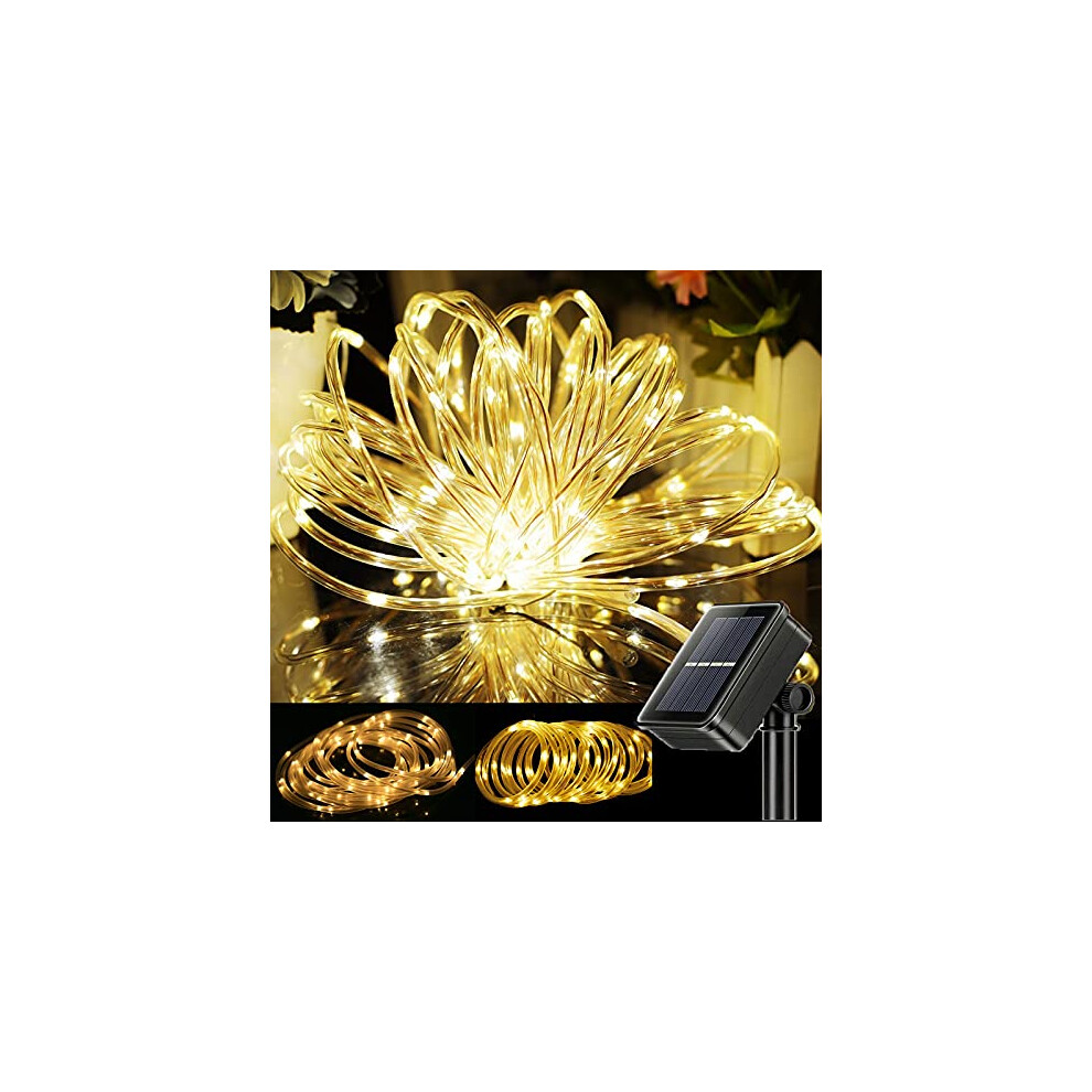 Outdoor Solar LED Rope Lights, IP65 Waterproof Rope Lights 12m/39.4ft 100LEDs Solar Decoration Lights with 8 Lighting Modes, Rope Fairy Light for