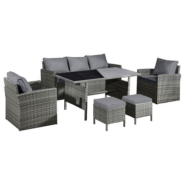 Oseasons Rattan 7 Seat Lounge Dining Set in Dove Grey Black