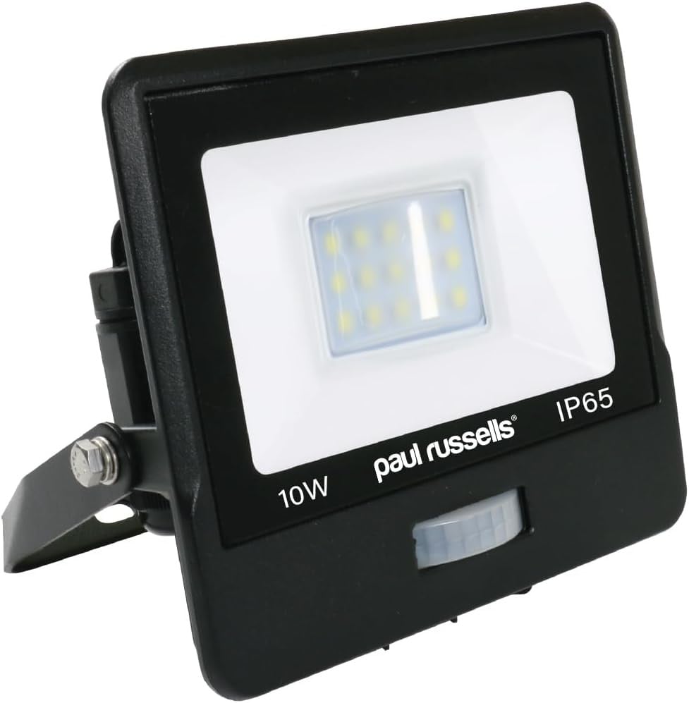 paul russells 10W Outdoor Motion Sensor Security Light – 6500K Daylight White, 1000 Lumen PIR Floodlight, IP65 Waterproof, Ultra-Thin Design, Ideal for Forecourt, Backyard, Garages, Garden and More