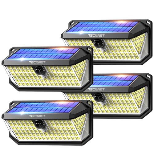TECKNET 416 LED Solar Lights Outdoor Garden 4200Lm, Motion Sensor Garden Lights, 300° Angle & 3 Lighting Modes, Security Outdoor Wall Light IP66 Waterproof for Fence Front Door Yard Garage, 4 Packs