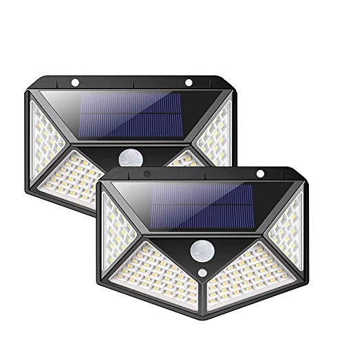 GRIFEMA DG1003-100, Wall Solar Lights for Outdoor (100 LED), Security Light with Motion Sensor, (2 Packs)