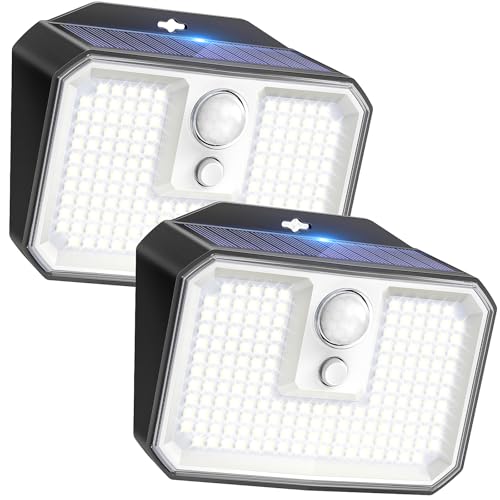 Solar Lights Outdoor, 168 LED Security Light with Motion Sensor Super Bright IP65 Waterproof, 3 Lighting Modes Outside Motion Activated Lights Easy Install for Fence Yard Door Garden (Cold Light 2PK)