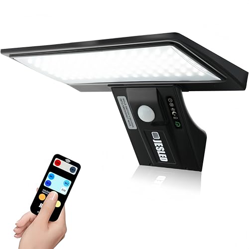 JESLED Solar Lights Outdoor, 90 LEDs Security Light with Motion Sensor, 3 Color Temperatures, USB Charging, 4 Modes, Remote Control for Yard Garden Garage