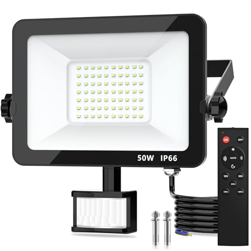 Aomeya Motion Sensor Outdoor Security Light, 50W 4750 Lumen LED Floodlights with PIR Sensor, IP66 Waterproof Motion Sensor Outdoor Wall Light with Remote Control for Garden, Backyard, Garage (50W)
