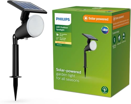 PHILIPS Tylus UltraEfficient Outdoor Solar Security Light with Sensor, 3000K, 1000/50lm, Black