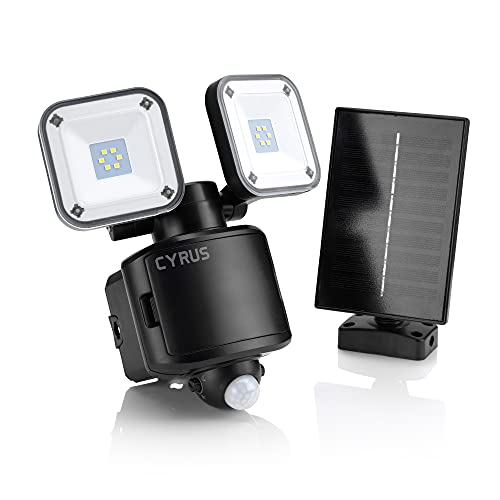 Auraglow Twin LED Outdoor Security Flood Light Hybrid Power Solar & Backup Battery PIR Motion Sensor - Cyrus