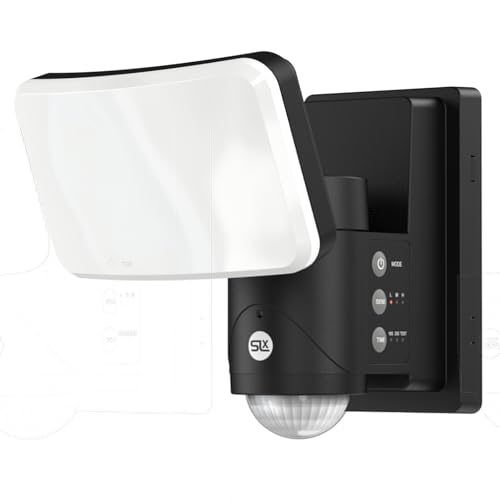 SLx Outdoor Security Light with PIR Motion Sensor, 2000 Lumen LED Floodlight, Mains Powered, IP65 Weatherproof, 240° Auto Tracking Robotic Sensor Black