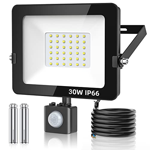 Totofac Motion Sensor Outdoor Security Light, 30W LED Floodlights with PIR Sensor, IP66 Waterproof Motion Sensor Outdoor Wall Light for Garden, Backyard, Garage, Doorways,6000K Daylight White