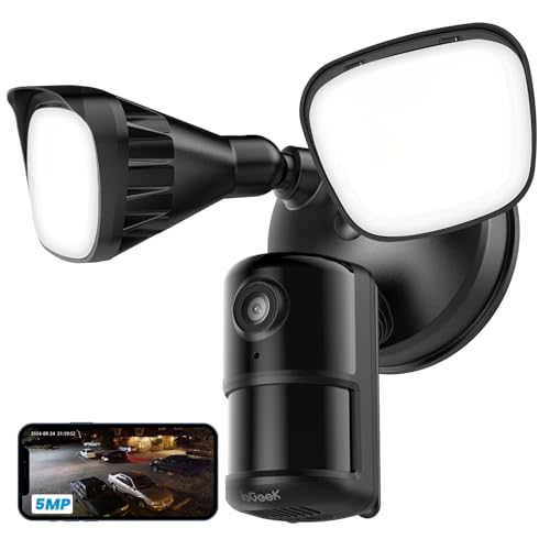 ieGeek 5MP Floodlight Camera Wired, 5G/2.4G WiFi Outdoor home Security Flood light Camera with Color Night Vision, 2600 Lumens, Motion Activated Floodlights/Smart Siren,2 Way Audio,Work with Alexa