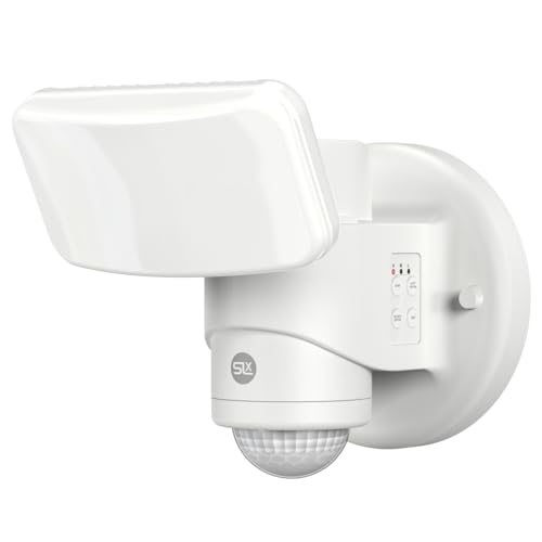 SLx Outdoor Security Light with PIR Motion Sensor, 1500 Lumen LED Floodlight, Battery Powered, IP65 Weatherproof, 240° Auto Tracking Robotic Sensor White