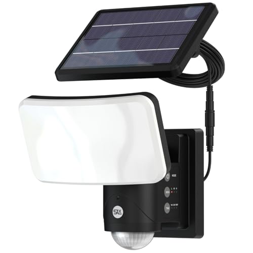 SLx Outdoor Security Light Solar Powered with PIR Motion Sensor, 1800 Lumen LED Floodlight, IP65 Weatherproof, 240° Auto Tracking Robotic Sensor Black