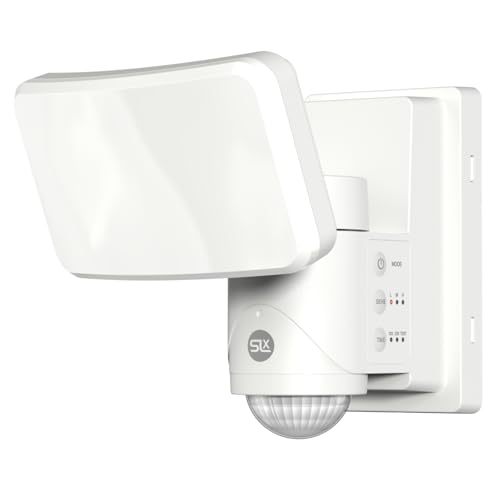 SLx Outdoor Security Light with PIR Motion Sensor, 2000 Lumen LED Floodlight, Mains Powered, IP65 Weatherproof, 240° Auto Tracking Robotic Sensor White