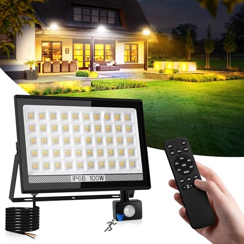 Aomeya Motion Sensor Outdoor Security Light, 100W 8750 Lumen LED Floodlights with PIR Sensor, IP66 Waterproof Motion Sensor Outdoor Wall Light with Remote Control for Garden, Backyard, Garage (100W)