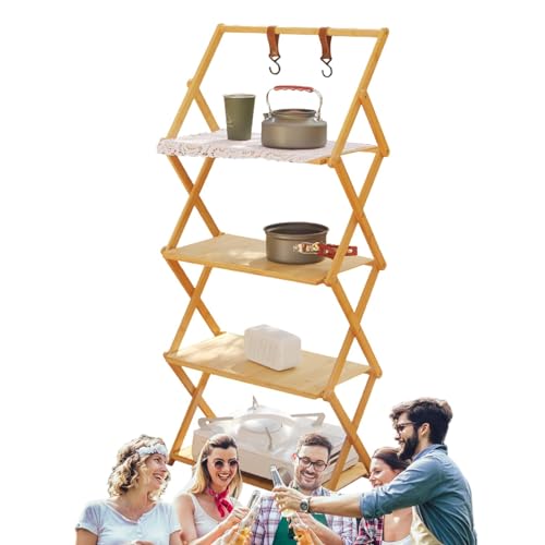 Portable Folding Table Stands - Outdoor Folding Shelving for Camping Outdoor Portable Folding Cabinet | Multifunctional Folding Camping Stand Outdoor Wooden Folding Shelf