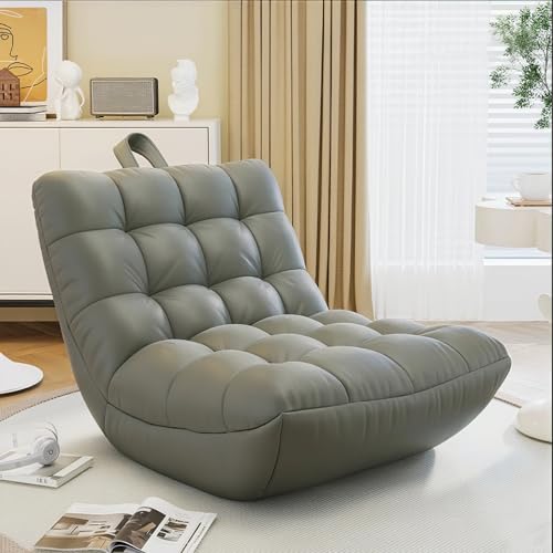 KBZSlyn Bean Bag Chair Cover (No Filler) with Ottoman Footstool Pouf Empty Lounger Lazy Sofa Bed Couch Sac | Waterproof Faux Leather | DIY Fill by Yourself for Indoor Outdoor(Grey sofa cover only)