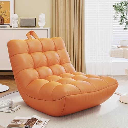 KBZSlyn Bean Bag Chair Cover (No Filler) with Ottoman Footstool Pouf Empty Lounger Lazy Sofa Bed Couch Sac | Waterproof Faux Leather | DIY Fill by Yourself for Indoor Outdoor(Orange sofa cover only)