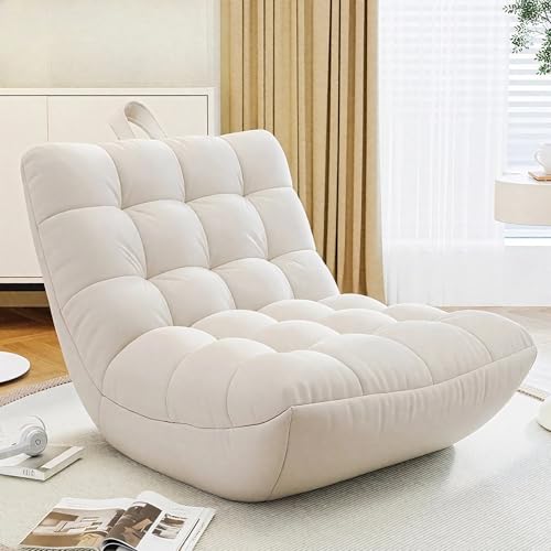 KBZSlyn Bean Bag Chair Cover (No Filler) with Ottoman Footstool Pouf Empty Lounger Lazy Sofa Bed Couch Sac | Waterproof Faux Leather | DIY Fill by Yourself for Indoor Outdoor(White sofa cover only)