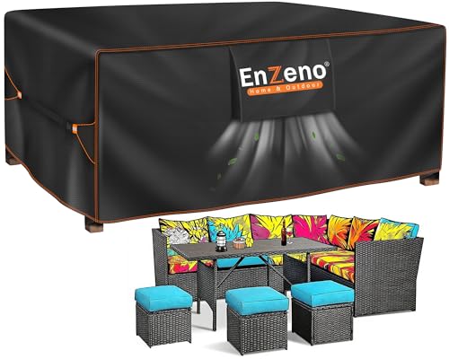 Enzeno Garden Furniture Cover,230X165X74cm Outdoor Patio Furniture Cover Waterproof,420D Heavy Duty Oxford Garden Table Cover Windproof,Anti-UV for Chair and Table Outdoor Rattan Sofa Cover…