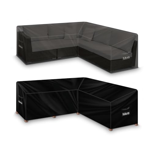Futura Premium V Shaped Garden Furniture Covers Waterproof 255x255x80cm, Heavy Duty 600D Oxford Fabric Outdoor Rattan Corner Sofa Cover, PVC Lined, Air Vents and UV Safe