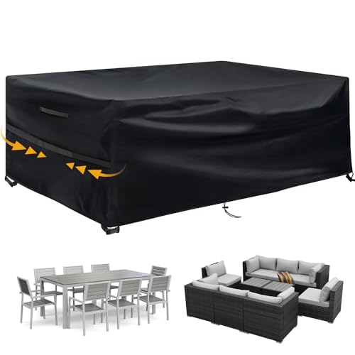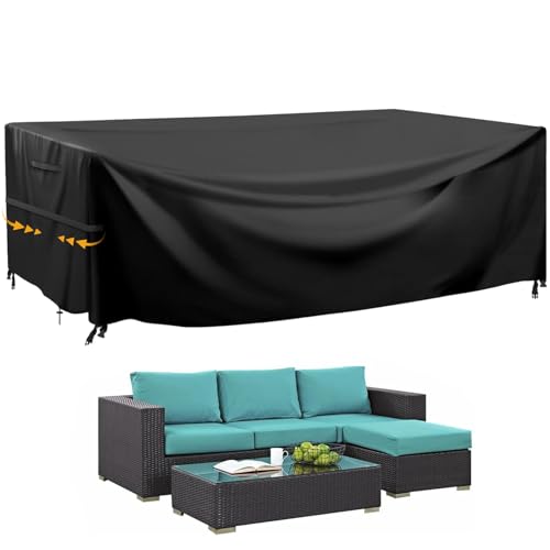 Garden Furniture Covers Waterproof, 350x260x90cm Oxford Fabric Outdoor Sofa Cover Windproof Sunproof with Handle Strap Drawstring Buckle for Garden Sofa, Table and Chair Set (Black, Rectangular)