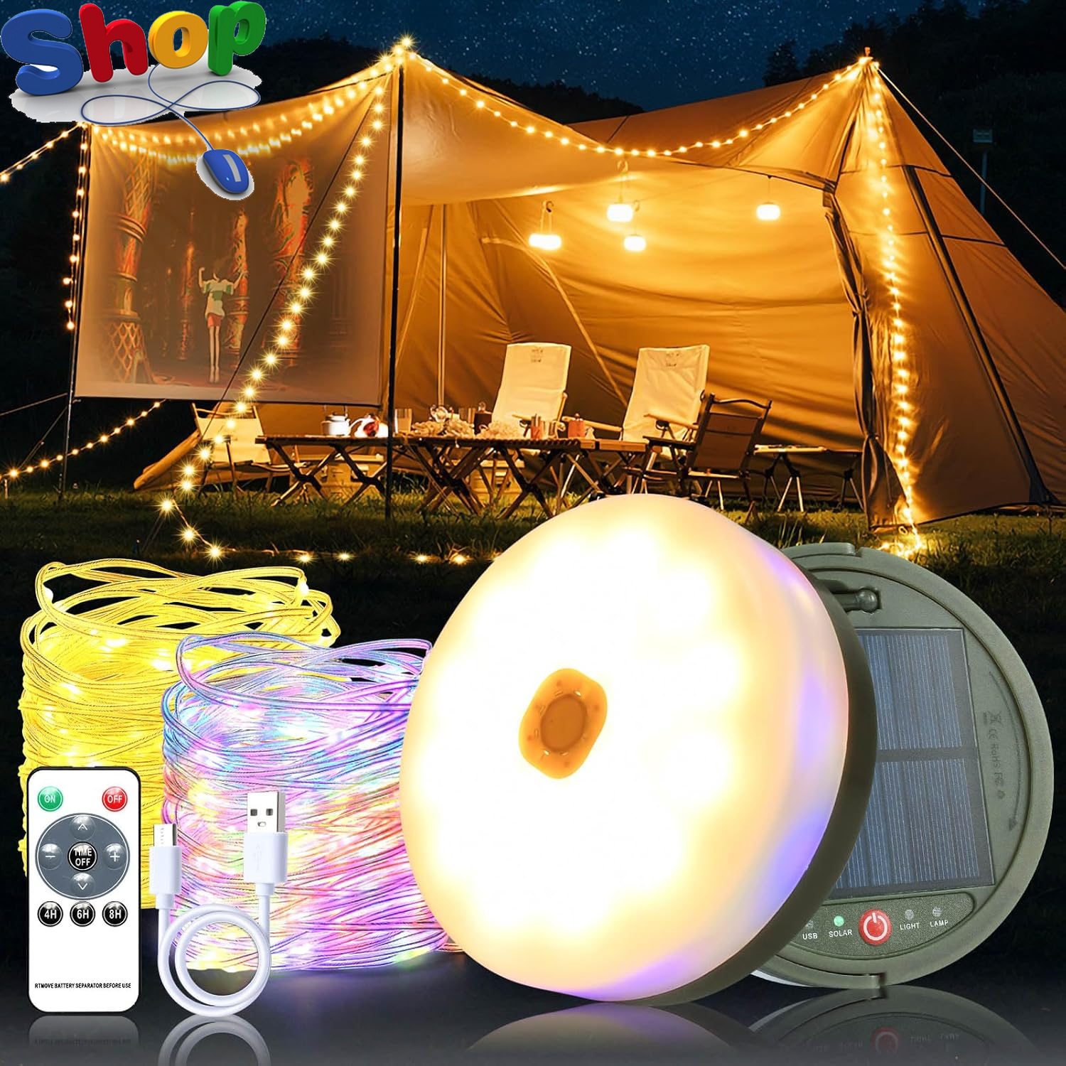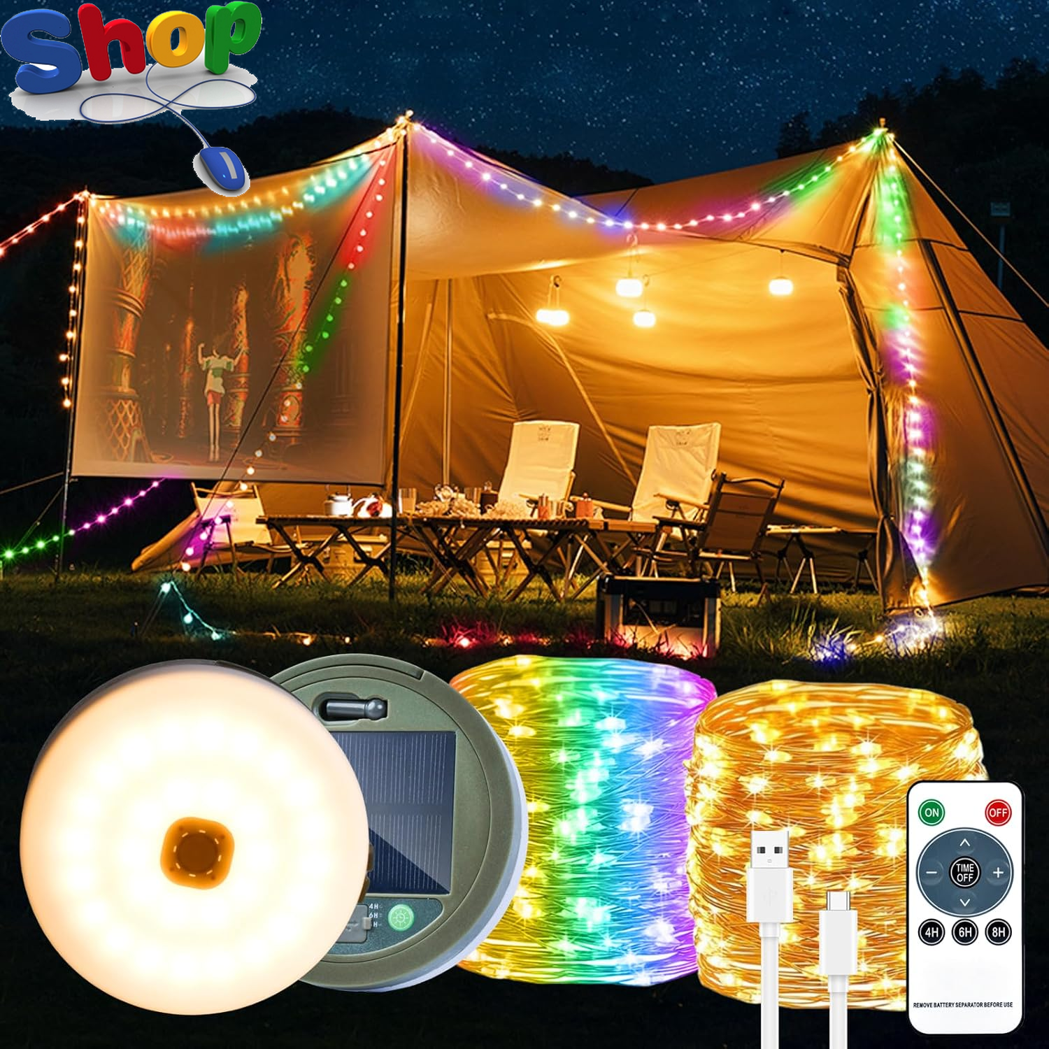 Outdoor Stowable Solar Camping String Lights RGBW 10M 100 LED Waterproof IP65 fo