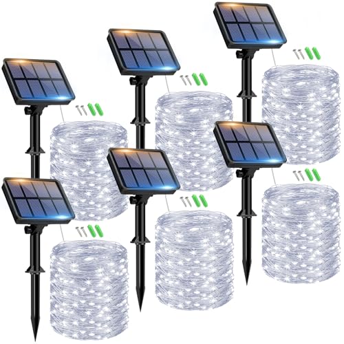 btfarm Solar String Lights Outdoor Garden 6Pack, 15+2M/56FT 150LED Outdoor Solar String Lights 8 Modes Fairy Lights Solar Powered, Copper Wire Solar Lights for Decorating Wedding, Yard (Cool White)