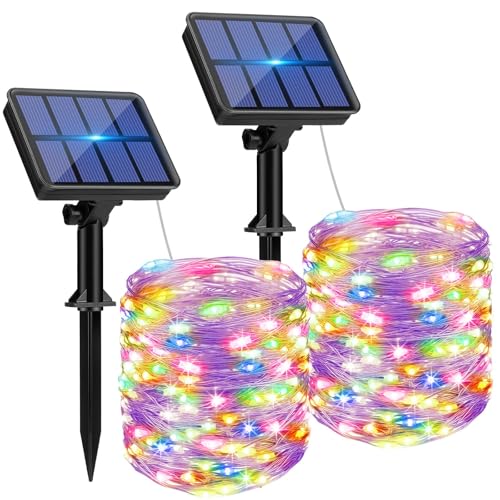 btfarm Solar String Lights Outdoor Garden 2Pack, 8M 80LED Outdoor Solar String Lights 8 Modes Fairy Lights Solar Powered, Copper Wire Solar Lights for Garden, Yard, Christmas, Multi-Colored