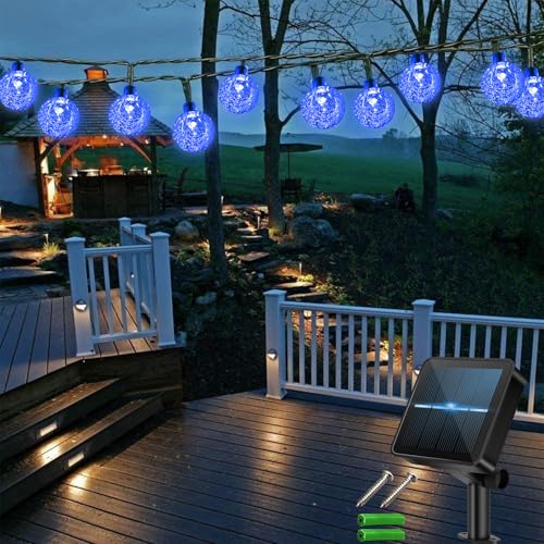 Huudngeje Outdoor Solar String Lights Waterproof Wind Chimes Blue Colored Ball Light Effect for Garden Balcony Party