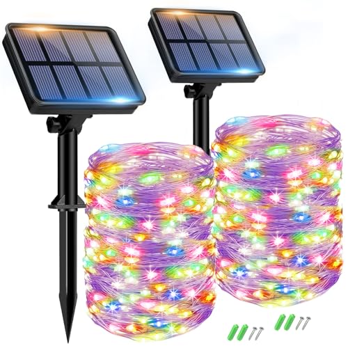 btfarm Solar String Lights Outdoor Garden 2Pack, 15+2M/56FT Outdoor Solar String Lights 8 Modes Fairy Lights Solar Powered, Copper Wire Solar Lights for Garden, Yard, Christmas, Multi-Colored