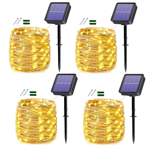 Oreunik Solar Fairy Lights Waterproof,4x120LED Garden Lights,Outdoor Solar String Lights 40Ft 8 Lighting Modes Outdoor Light for Garden, Patio, Party, Wedding,Christmas (Warm)