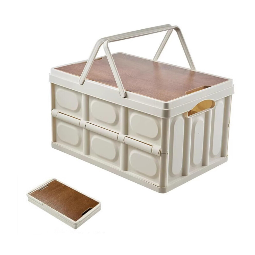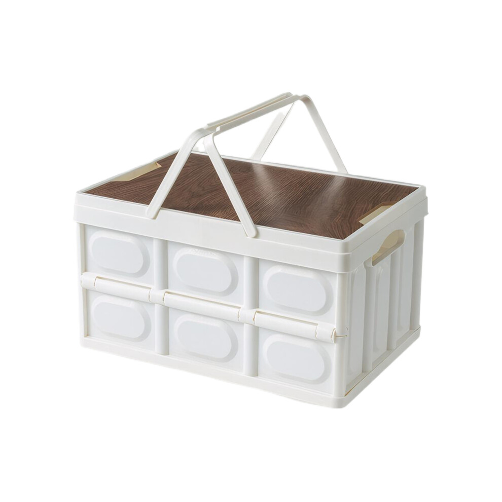 Collapsible Picnic Basket M Size White Foldable Multi Purpose Outdoor Storage Bin With Handles