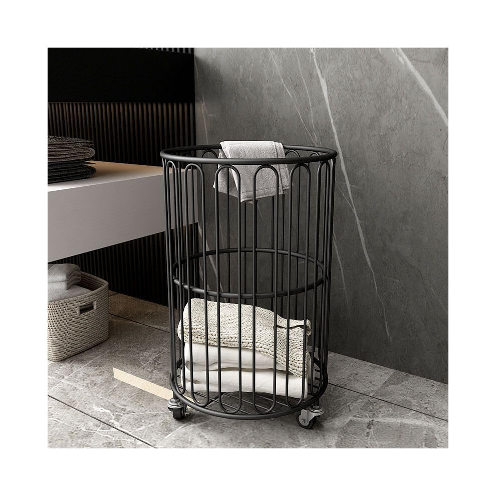 Metal Laundry Basket, Black Wire Hamper for Blankets and Towels, Indoor Outdoor Storage Bin 36x36x52cm