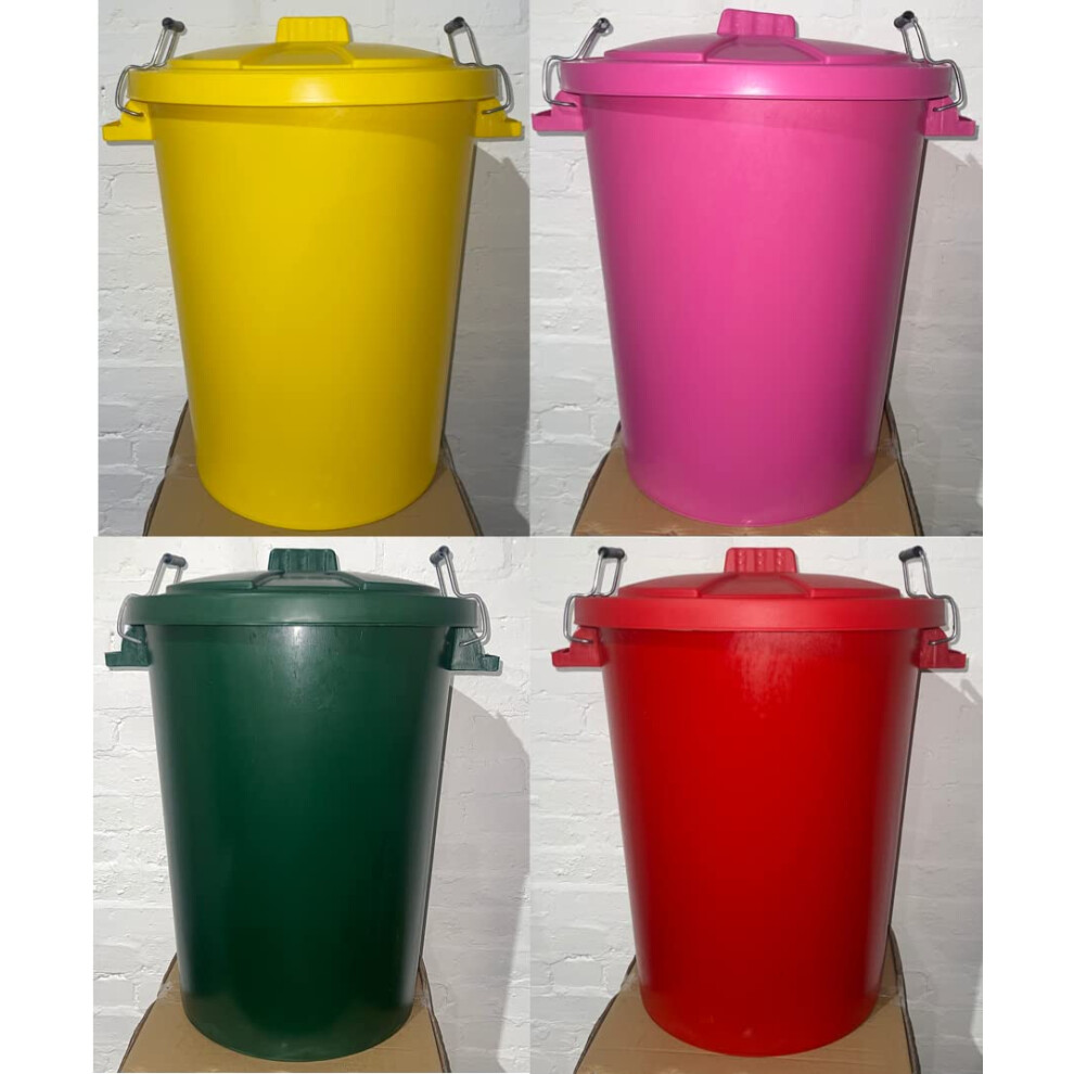 Dustbin 90L Coloured Large Plastic Bins - Heavy Duty Plastic w/Metal Handle - Outdoor Bin Storage, Large Bin w/Lid for Easy Refusal, Durable Outside,