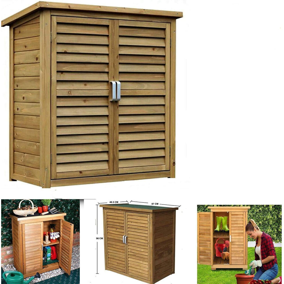 HYGRAD All Weather Wooden Outdoor Garden Lawn Cabinet Tool Shed Shelf Cupboard Storage Shed Outdoor Storage Shed Chest Double Doors with Shelf Hinged