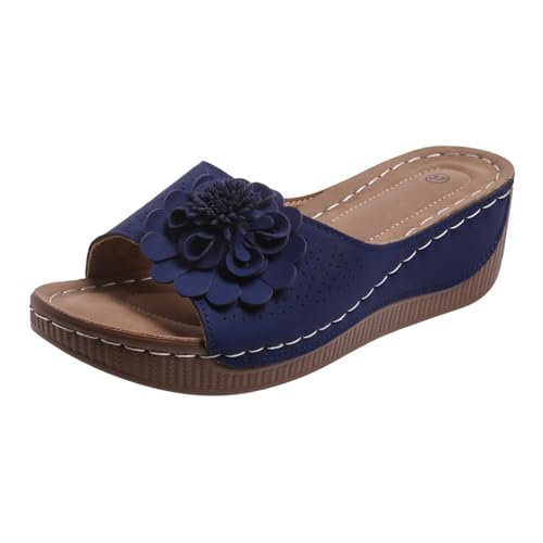 Women's Slippers Wedge Heel Fish Mouth Thick Bottom Lightweight Slippers Hollow Open Toe Outdoor Holiday Beach Casual Sandals Table Tennis Shoes Women, darkblue, 9 UK