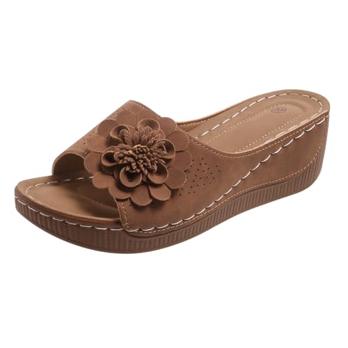 Women's Slippers Wedge Heel Fish Mouth Thick Bottom Lightweight Slippers Hollow Open Toe Outdoor Holiday Beach Casual Sandals Table Tennis Shoes Women, brown, 9 UK