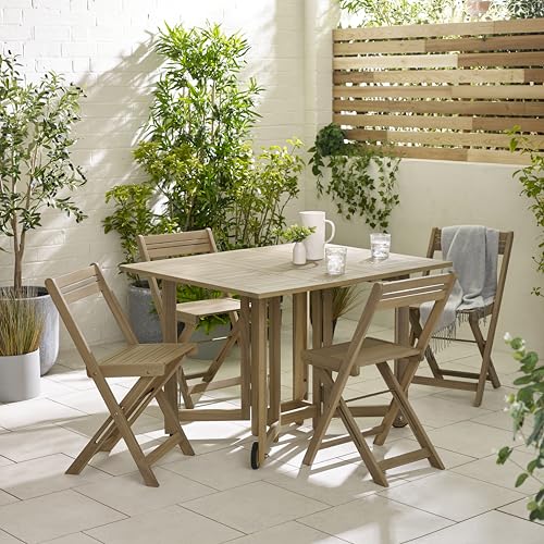 Furniturebox UK Outdoor Furniture, Stowaway SOLID WOOD 4 Seat Outdoor Dining Table & Chairs Set, Drop Leaf Wooden Folding Table & 4 Folding Chairs
