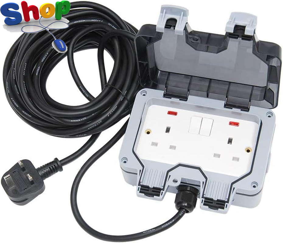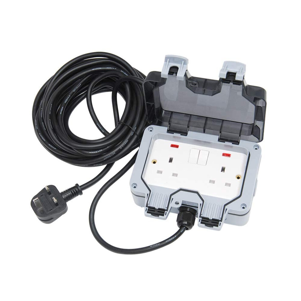 Weatherproof Outdoor Socket Waterproof Socket 3M Extension Lead IP66 Wall Electrical Outlet 13Amp 2 Gang Power Garden Outside Plug Sockets Cover Box