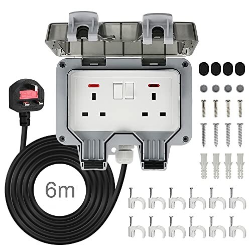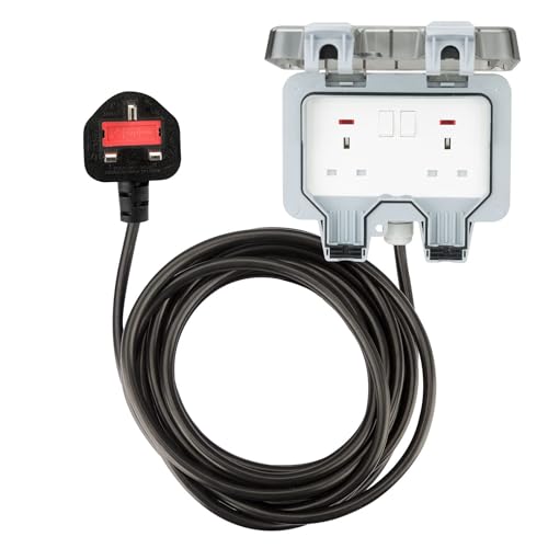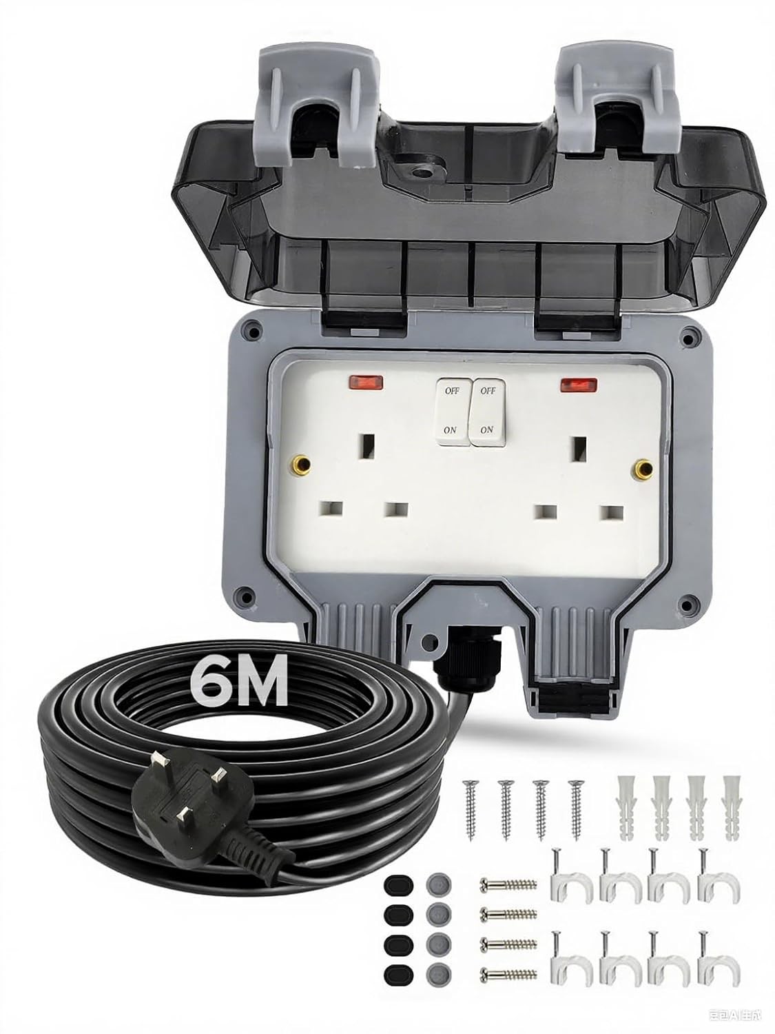 Outdoor Socket with 6m Extension Lead Outdoor Double Plug Socket Waterproof IP66