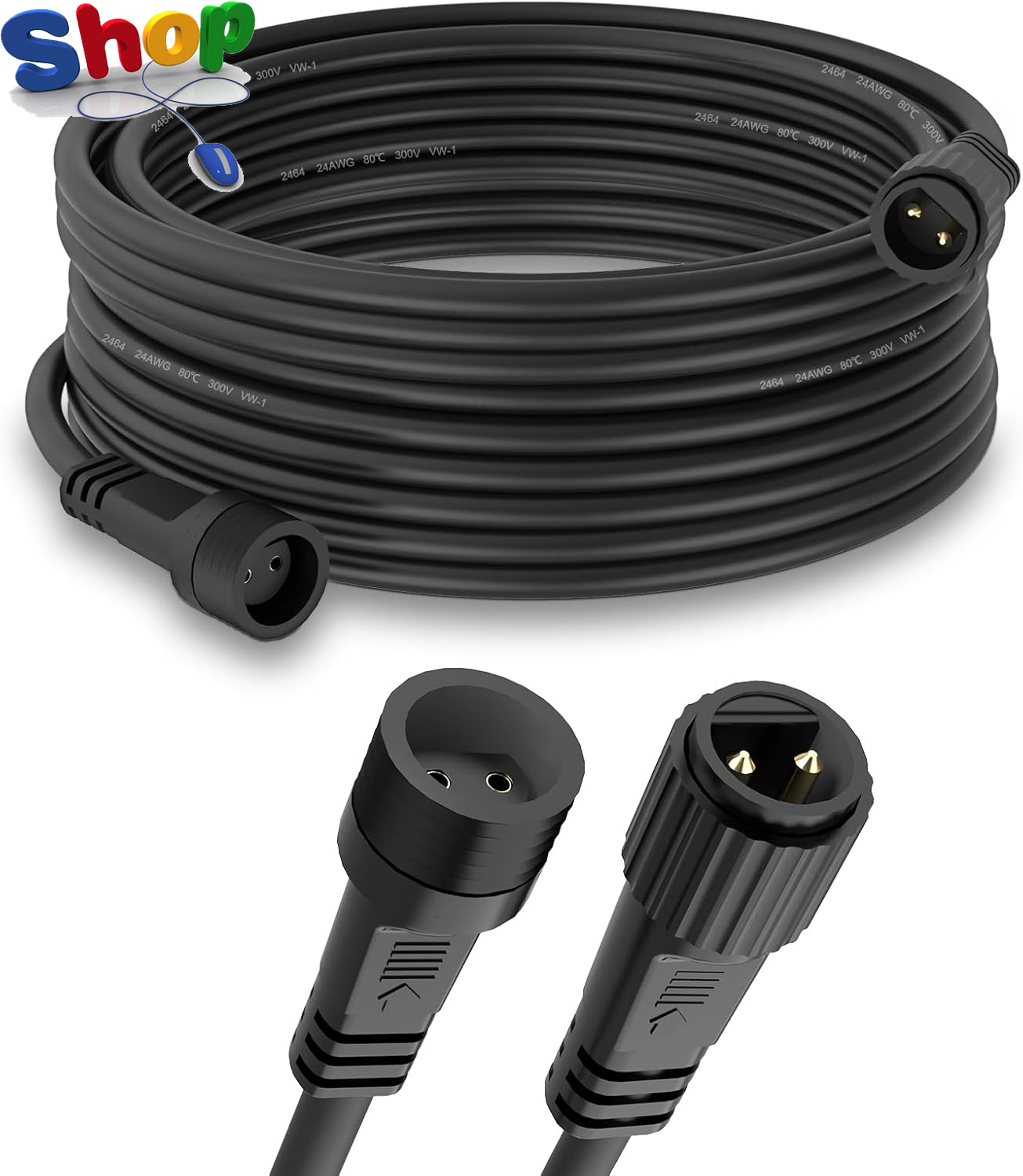5M Extension Cable, 16.4Ft 2 Pin LED Connector IP65 Waterproof Extension Lead Cord for G40 Globe Lights, Outdoor Festoon Lights, Icicle Fairy Lights, Net Lights, Christmas String Lights