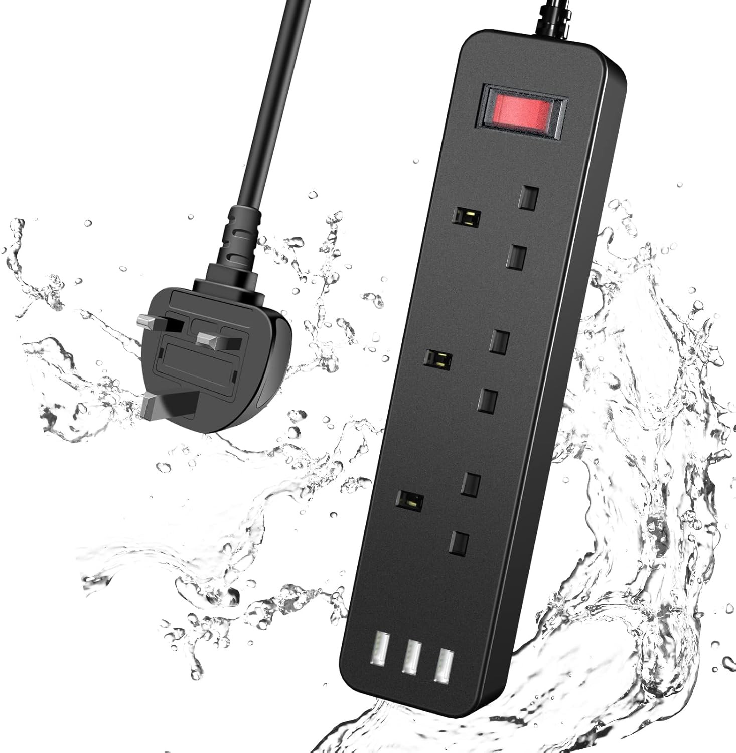 Outdoor Extension Lead with USB Slots, Waterproof Power Strip with 3 Way Outlet