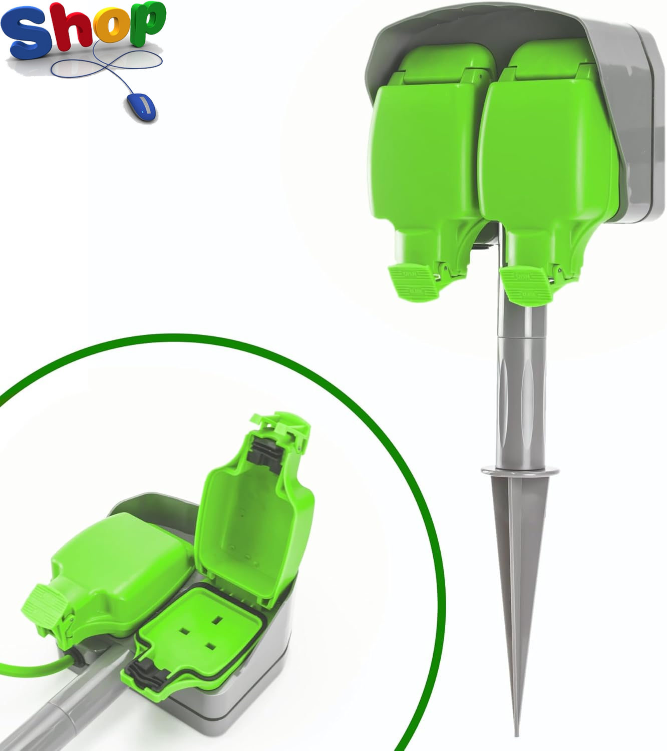 Garden Spike Socket, 15M Outdoor Extension Lead, Waterproof, 13 Amp, Dual Socke