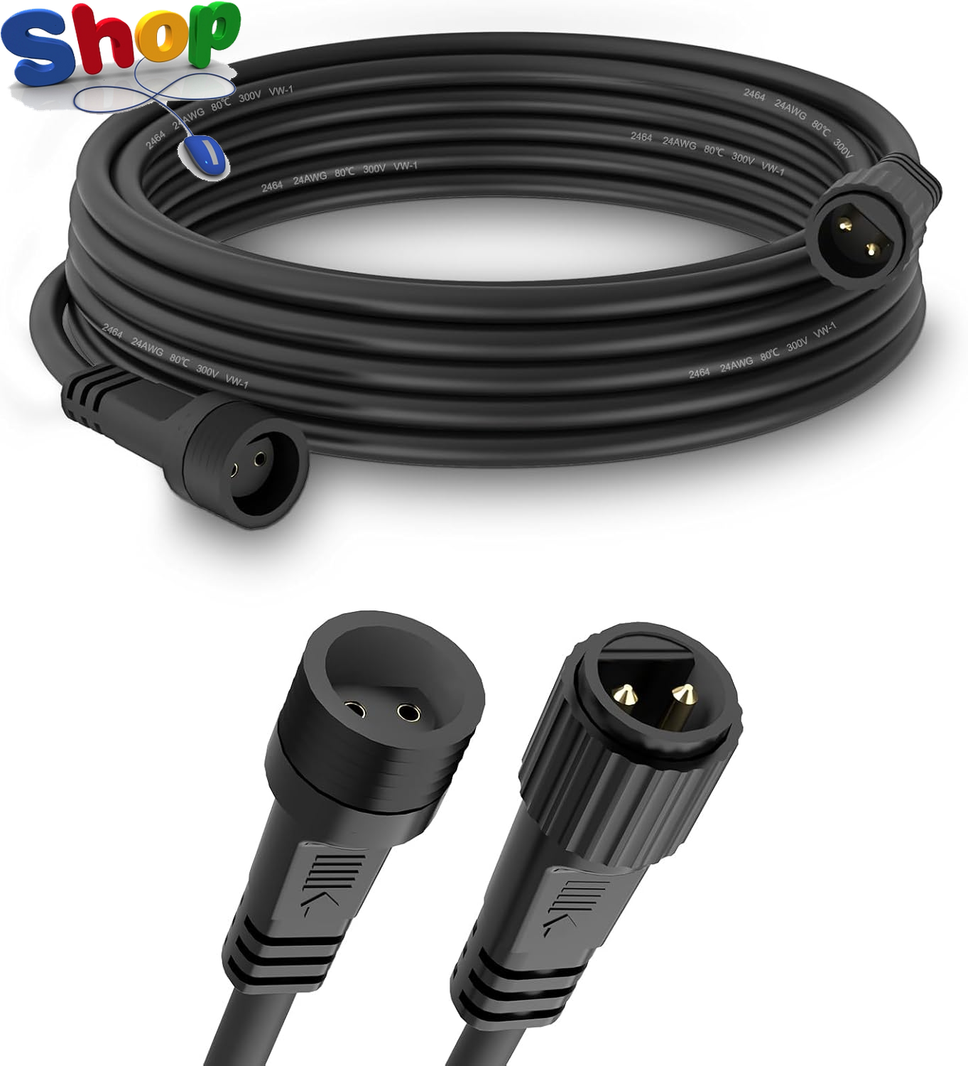 10M Extension Cable, 32.8Ft 2 Pin LED Connector IP65 Waterproof Extension Lead Cord for G40 Globe Lights, Outdoor Festoon Lights, Icicle Fairy Lights, Net Lights, Christmas String Lights (Pack of 2)