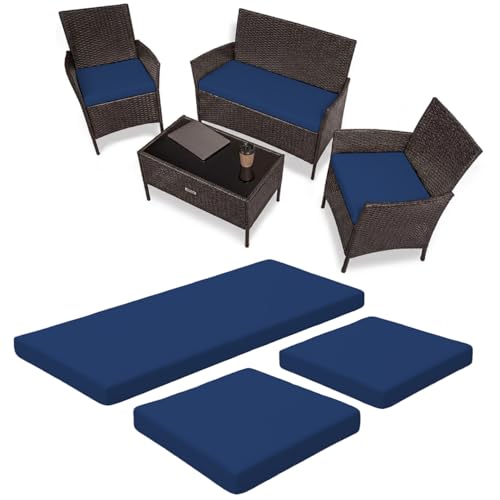 XIEMINLE Sun-Resistant Chair Cushion for Outdoor Furniture, Waterproof Bench Cushion with Backrest, 2-3 Seater Garden Swing Seat Pad, Comfortable Seat Mat with Nonslip Ties,120 * 100 * 10cm,Blue