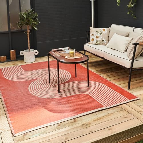 THE RUGS Urban Collection Outdoor Rug - Easy to Clean, Reversible, Waterproof Plastic Outdoor Rugs for Garden, Patio, Balcony, Camping - Contemporary Plastic Straw Rug - Waves Terra/Beige, 150x220cm