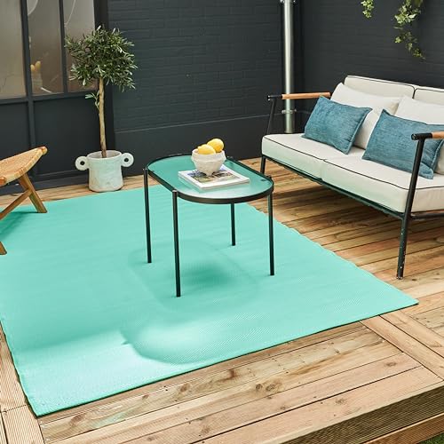 THE RUGS Urban Collection Outdoor Rug - Easy to Clean, Waterproof Plastic Outdoor Rugs for Garden, Patio, Balcony, Camping - Contemporary Plastic Straw Rug - Mono Turquoise, 180x270cm